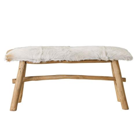 Goat Fur Covered Wood Bench